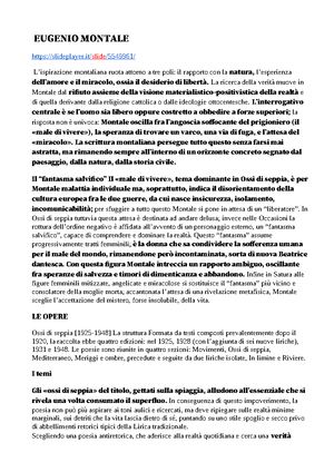 Eugenio Montale Riassunto Letteratura Italiana Studocu